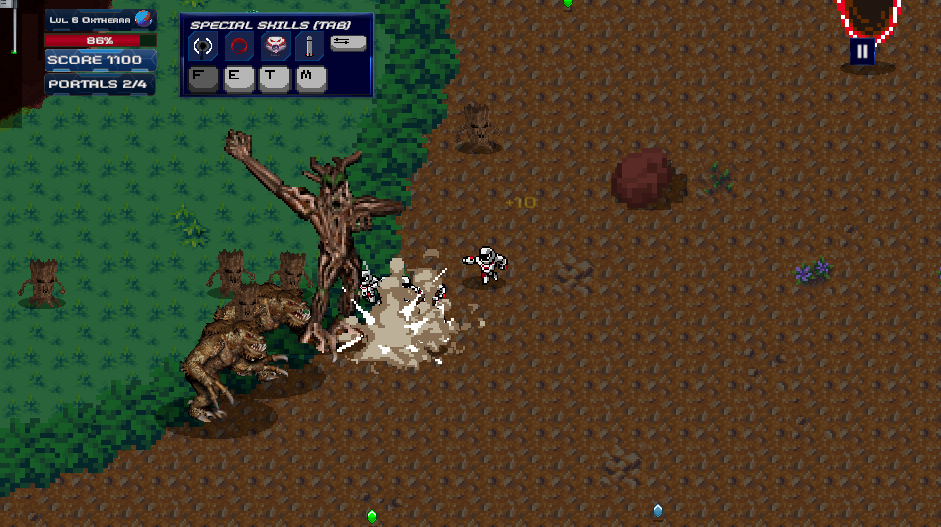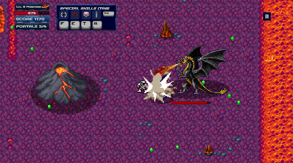 Conquer the 8 planets, face deadly bosses, survive hazardous terrains, and use powerful abilities to destroy monster-filled portals and restore peace.